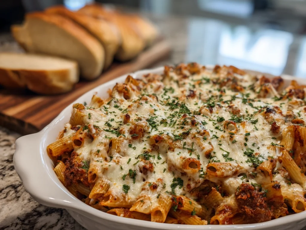 This recipe leaves plenty of room for creativity. Whole wheat or gluten-free pasta can be used if you prefer a healthier or allergen-friendly option. Adding vegetables such as spinach, mushrooms, or zucchini brings extra flavor and nutrition without changing the comfort of the dish. Cottage cheese can replace ricotta for a lighter filling, while a sprinkle of Parmesan or red pepper flakes adds a flavorful finishing touch. Pairing the baked ziti with garlic bread and a crisp green salad creates a complete Italian-style meal that feels both simple and satisfying.