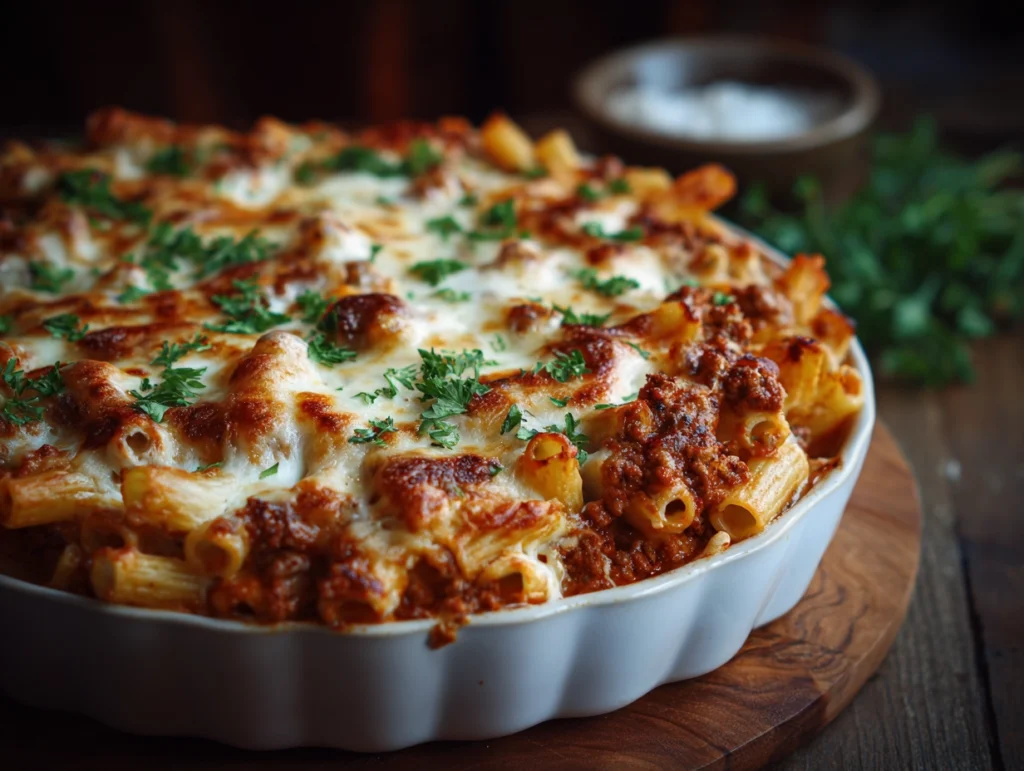 Baked ziti is a quintessential Italian comfort dish that combines tender pasta, savoury meat, creamy cheeses, and rich marinara sauce into one irresistible casserole. Its golden, bubbling top and perfectly layered flavours make it a favourite for family dinners, special occasions, or casual gatherings. This classic recipe elevates simple ingredients into a harmonious, indulgent dish that satisfies both the eyes and the palate. The appeal of baked ziti lies in its balance of textures soft pasta, creamy ricotta, and the crisp, cheesy topping create a symphony of flavour in every bite.
