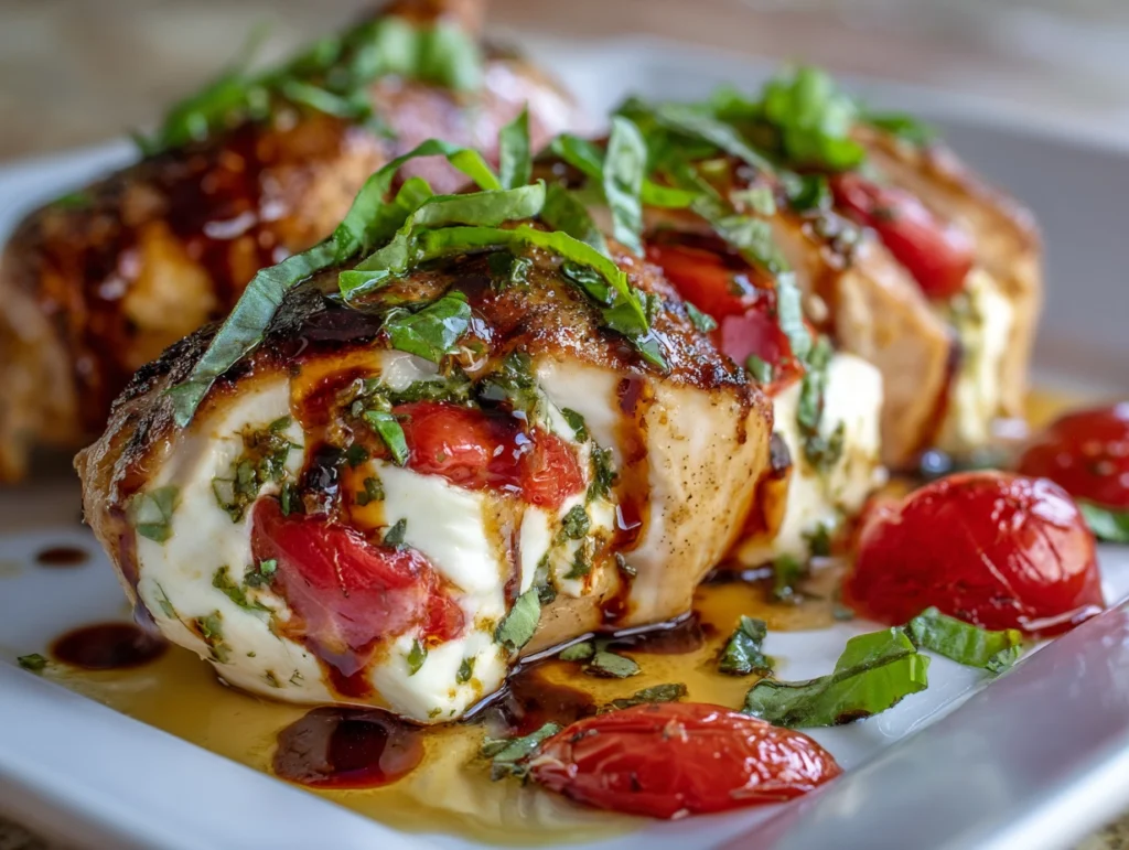 minutesThis Easy Caprese Stuffed Chicken is a juicy, flavorful dish inspired by the classic Caprese salad. Chicken breasts are stuffed with fresh mozzarella, tomatoes, and basil, then baked to perfection and drizzled with balsamic glaze. A simple, elegant meal perfect for weeknights or dinner parties.
