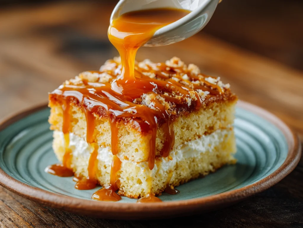 The caramel drizzle is created by melting brown sugar and butter into a glossy base before whisking in heavy cream for a silky finish. After it thickens gently on the heat, it cools to the ideal pouring texture, allowing it to flow beautifully over the frosted cake. When layered with whipped or buttercream frosting and finished with the golden caramel, the Bento cake becomes a visually appealing and indulgently rich dessert.