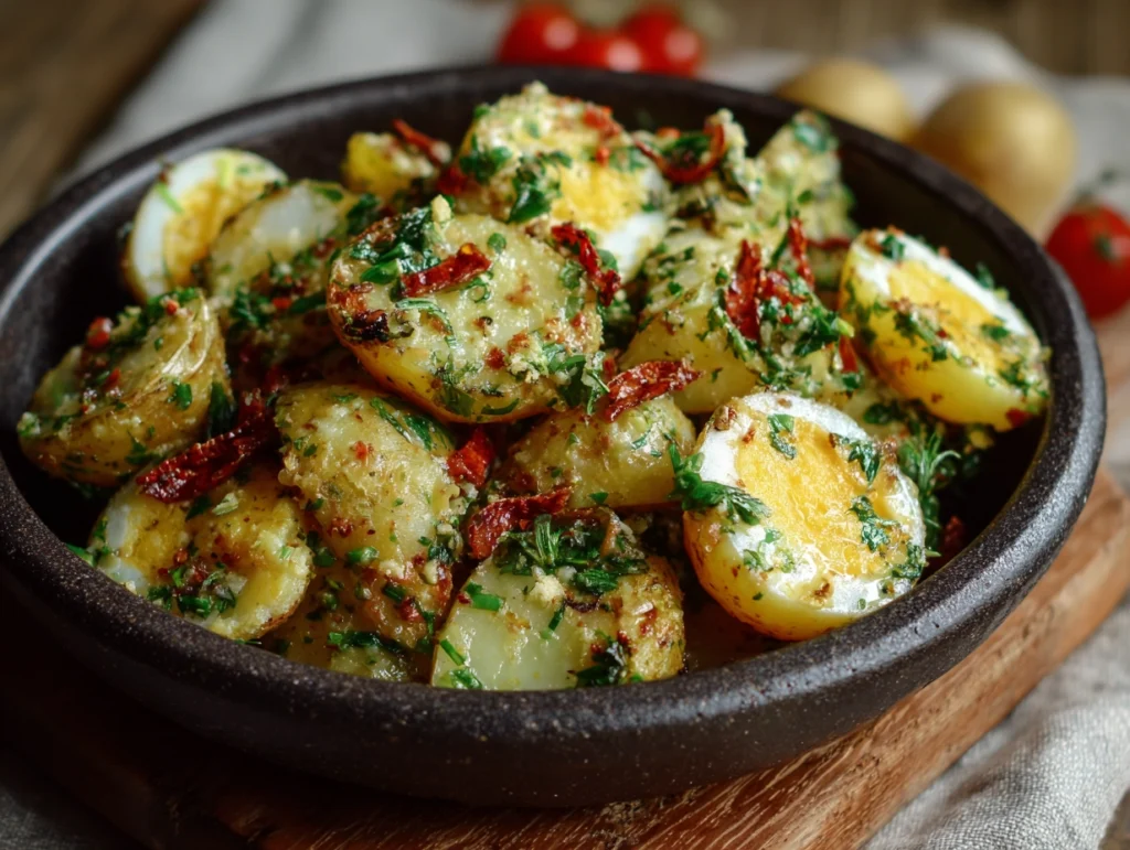 Potato salad is a timeless comfort dish, but this version elevates it to a new culinary level. Featuring golden roasted potatoes tossed in a light and flavourful dressing, it delivers a satisfying crunch and a burst of freshness in every bite. Unlike the traditional creamy salad, this recipe balances texture and taste, offering a more dynamic eating experience. Perfect for gatherings or an everyday side, it brings elegance and flavour to the table effortlessly.