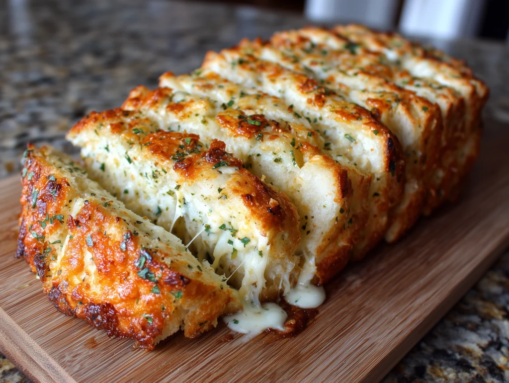 You can easily elevate this garlic cheese bread with a light sprinkle of red pepper flakes for heat or a drizzle of garlic infused olive oil for extra richness. For a more gourmet twist, try adding finely chopped sun dried tomatoes or silky caramelized onions before baking. It pairs beautifully with pasta, lasagna, creamy soups, or even grilled meats truly a versatile companion for any meal.