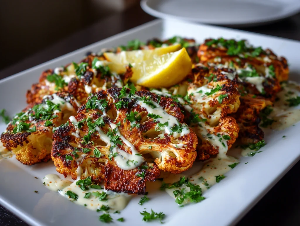 For a complete meal, serve the roasted cauliflower steaks with herbed couscous or quinoa. Adding a drizzle of tahini or yogurt sauce elevates the dish with a creamy dimension, while roasted chickpeas contribute additional protein. For a smoky twist, try grilling the steaks instead of roasting, enhancing the caramelization and outdoor flavor profile.